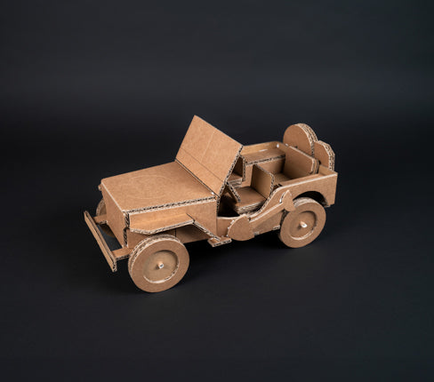 Le véhicule du débarquement du 6 juin 1944 en Normandie (France) est une 'Jeep Willys', c’est d’elle dont cette maquette en carton recyclé est inspirée ! L’utilisation d’un matériel militaire très innovant comme ce véhicule a déterminé la réussite du débarquement.